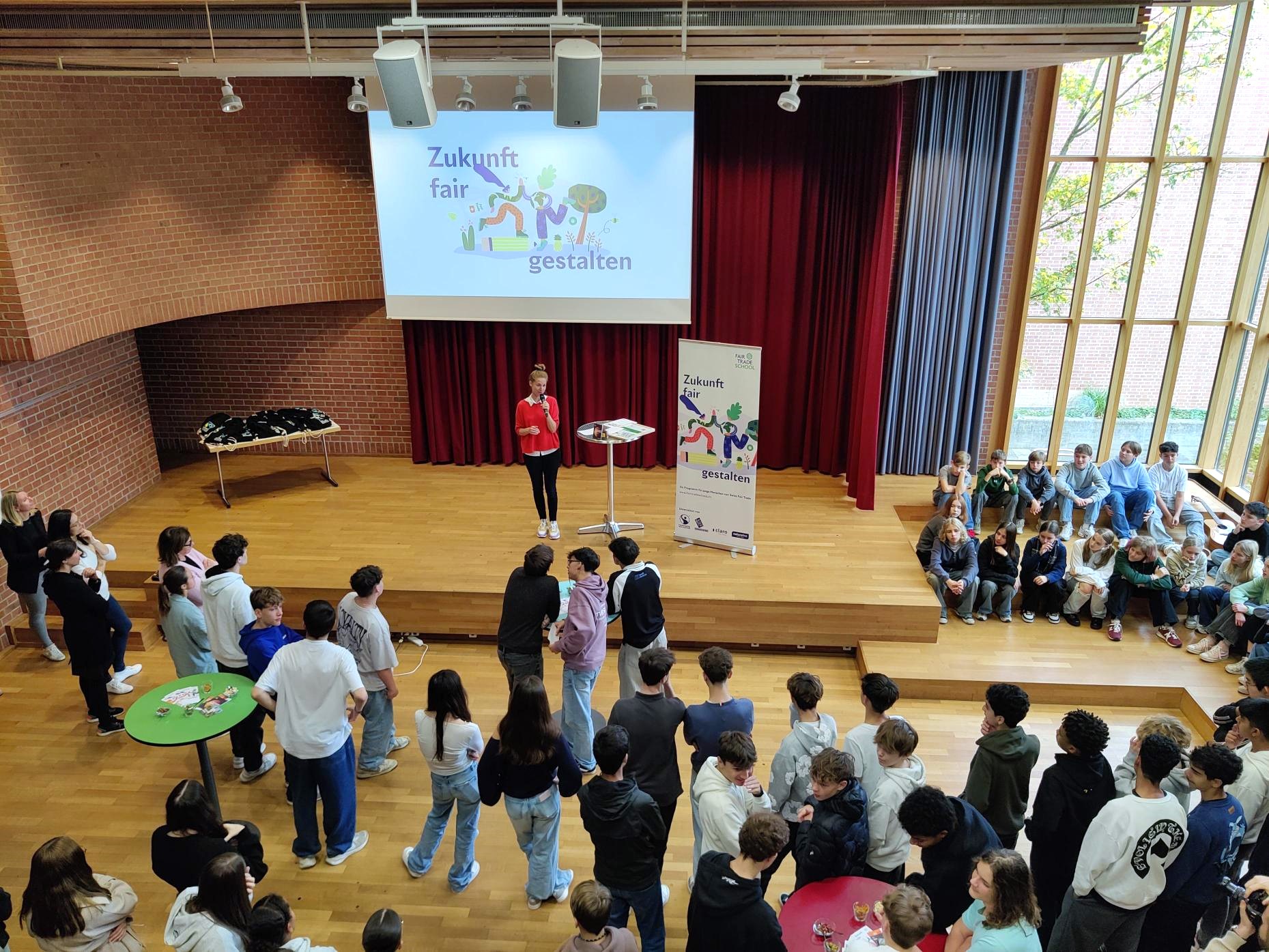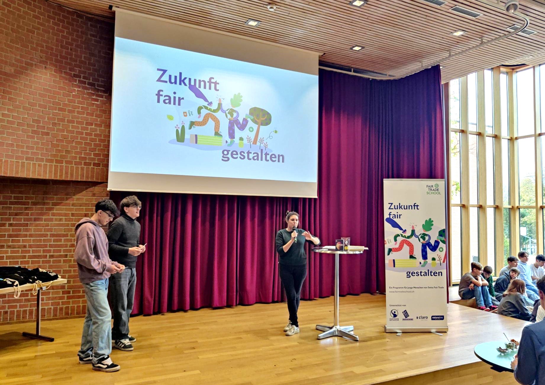 Lors de la manifestation, deux élèves ont réalisé une interview avec Lisa Stepanski de gebana AG. Cet entretien a permis au public de découvrir les valeurs pour lesquelles gebana AG s’engage et les effets positifs concrets que peut avoir la consommation de produits équitables : par son approche, gebana SA favorise des chaînes d’approvisionnement courtes et favorise la création de valeur à chaque échelon. Par ailleurs, elle participe à des projets sociaux et de formation et partage 10 % du chiffre d’affaires de sa boutique en ligne directement avec les productrices et producteurs.