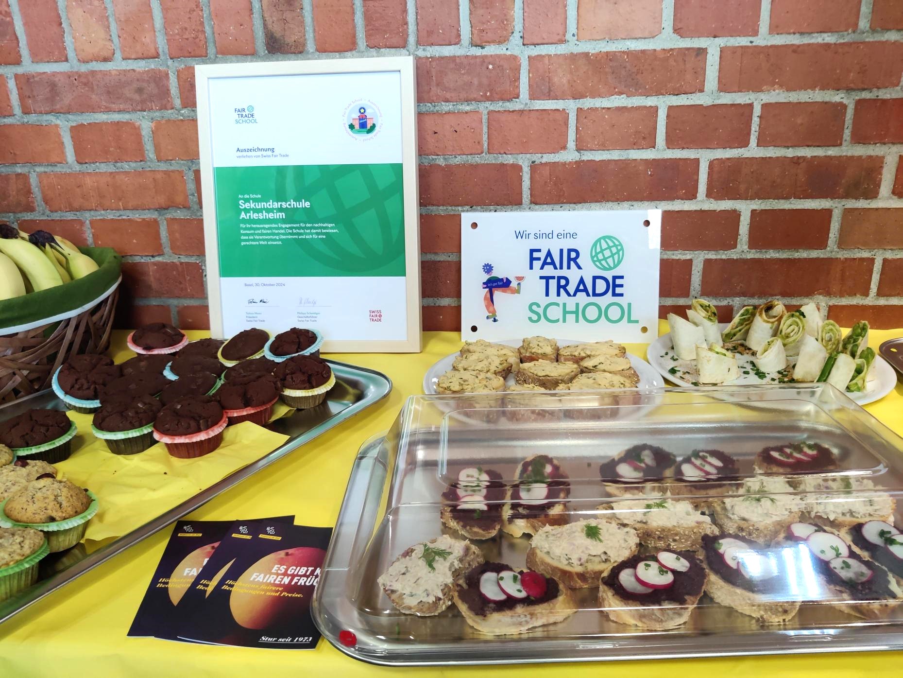 Le 30 octobre dernier, l’école secondaire d’Arlesheim a reçu la distinction Fair Trade School, devenant ainsi la troisième école en Suisse à recevoir cette distinction pour son engagement en faveur du commerce équitable. Durant près d’un an et demi, les élèves se sont engagé.e.s activement au travers de nombreuses initiatives autour du commerce équitable.