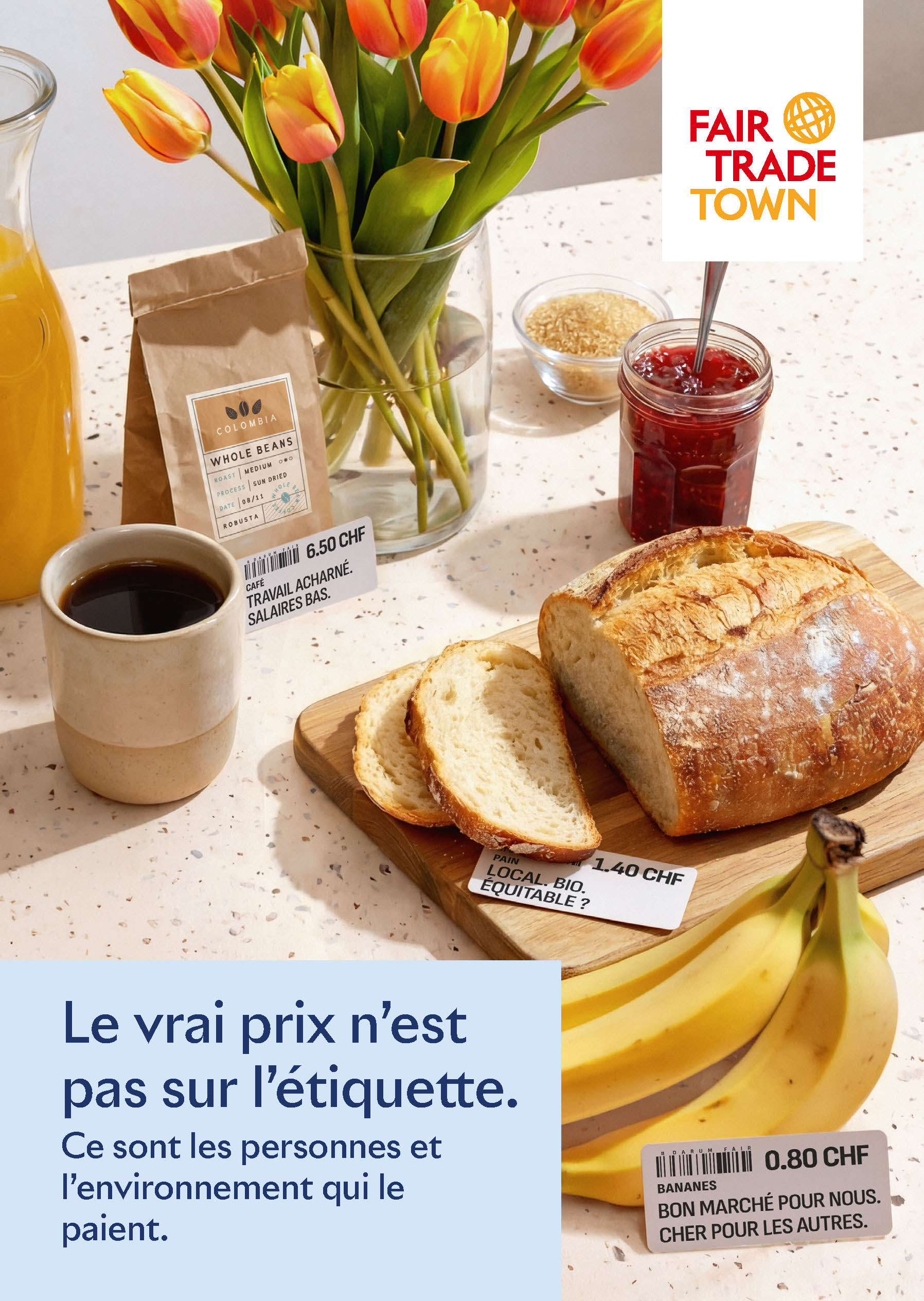 Informations et ressources Informations sur Fair Trade Town Fair Trade Town : le programme Fair Trade Town : après la distinction (DE) Fair Trade Town : critères et coûts Ressources et outils pratiques Liste de produits – propositions pour une consommation équitable Critères pour les produits locaux équitables Formulaire d’inscription pour les partenaires Guide pour une cérémonie de distinction réussie Recommandations de films Autocollant de fenêtre (commande par e-mail) Modèle de flyer pour activité(commande par e-mail – nous effectuons les ajustements pour vous) Modèle de flyer pour activité(commande par e-mail – nous effectuons les ajustements pour vous) Guide d’utilisation de la plateforme Fair Trade Town: instructions pour l’espace de connextion / profil Fair Trade Town Matériel de campagne – Journée mondiale du commerce équitable 2025 – Textiles Ce que nous portons fait la différence 2023-2024 – ImpactsLe commerce équitable change la donne 2021-2022 – Climat Résilience climatique et moyens de subsistance 2020 – Égalité des chances Je suis aussi une entrepreneuse 2019 – Équitable, local et de saison Agir localement pour changer le monde Quiz sur la Journée mondiale du commerce équitable (peut être commandé chez nous) Nos partenaires