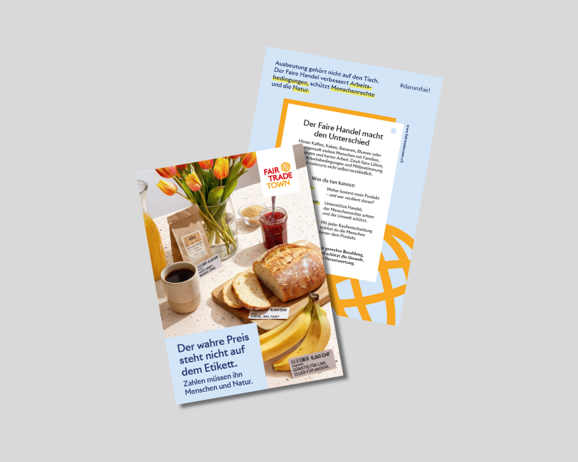 Material für den World Fair Trade Day 2025 (Flyer, Poster, Hintergrundbericht und Medienmitteilung) gibt es hier.