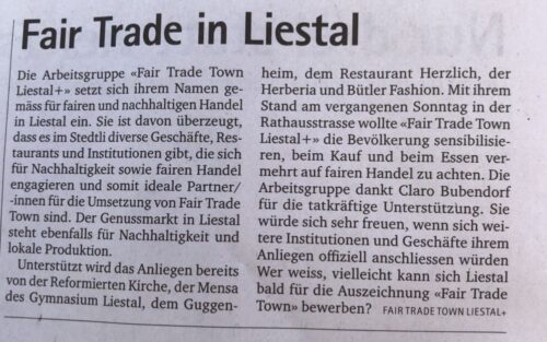 Mit regelmässiger Berichterstattung in verschiedenen Medien machen wir auf das Fair Trade Town Engagement aufmerksam.